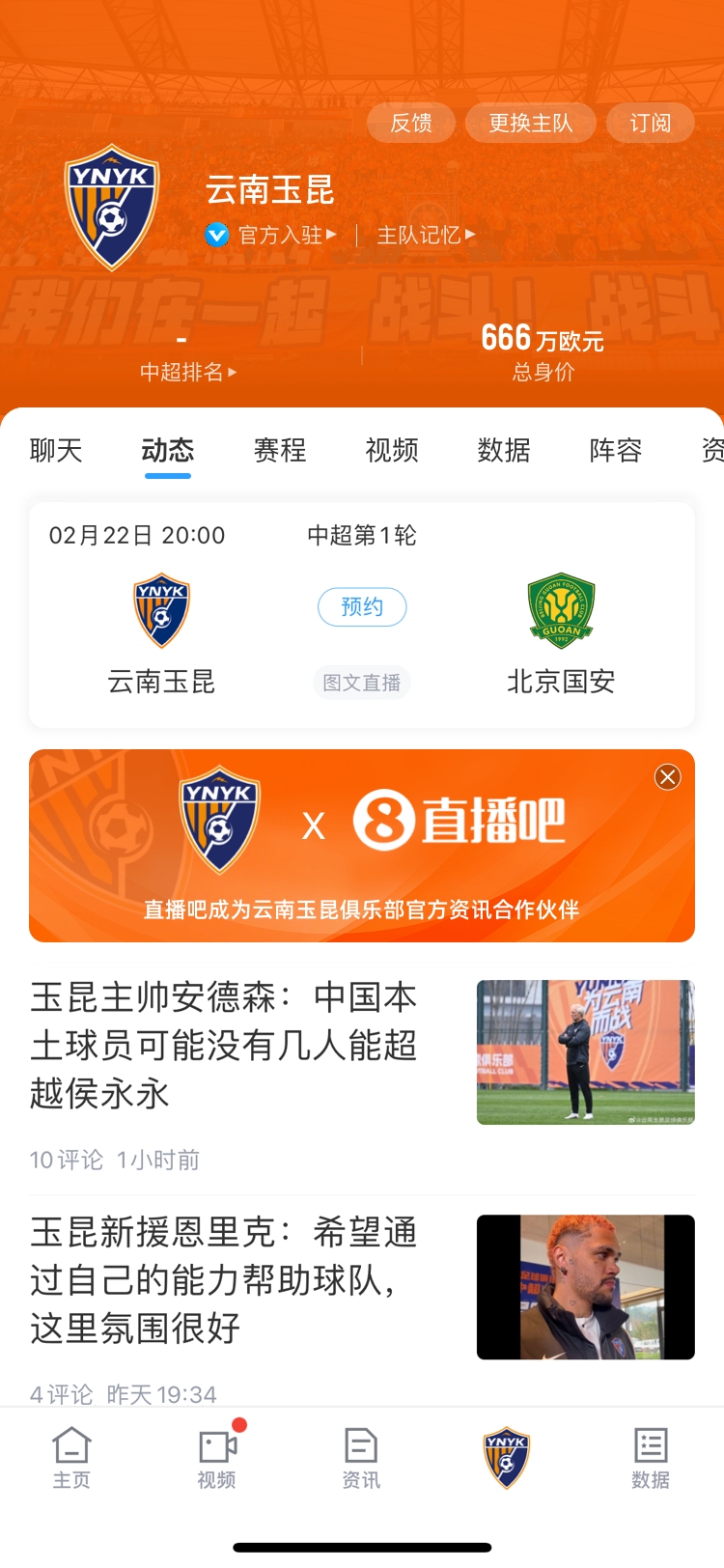 官宣!云南玉昆足球俱樂部正式入駐,直播吧成為官方資訊合作伙伴